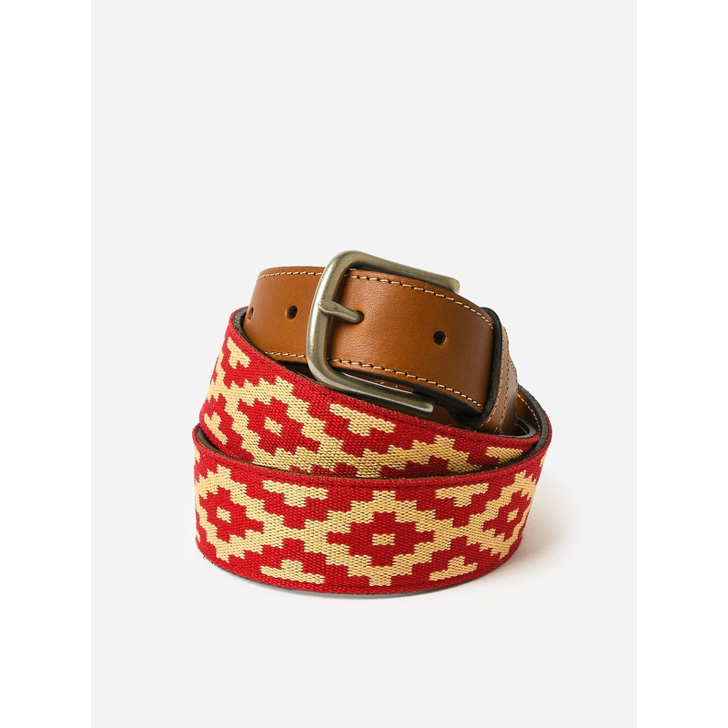 DESCRIPTION:A cognac leather belt with a hand-stitched woven fabric.FEATURES:Nickel-Matte Solid Brass BuckleVegetable Tanned Cognac LeatherHand-Stitched Argentine Woven FabricWidth: 1.25 in.