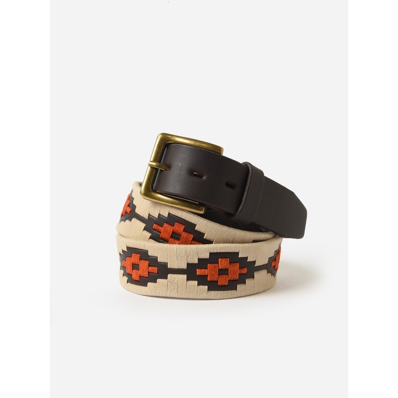 DESCRIPTION:Chocolate leather belt with a Texas-inspired hand-embroidered design.FEATURES:Solid Brass Buckle Durable Waxed Cotton ThreadWorld-Class Argentine Saddle LeatherHand-Embroidered in Argentina Width: 1.25 in.