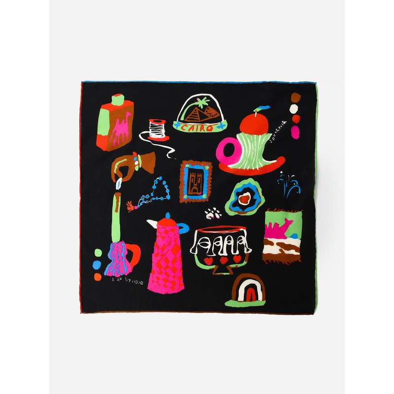 Crepe de chine bandana featuring a hand-illustrated design inspired by Cairo.