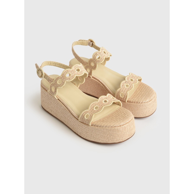 DESCRIPTION:Step into spring with this effortlessly chic raffia platform sandal. The sweet broderie detailing adds a touch of charm, while the versatile design makes them perfect for casual outings and dressier occasions.FEATURES:Open ToeBroderie StrapsAdj
