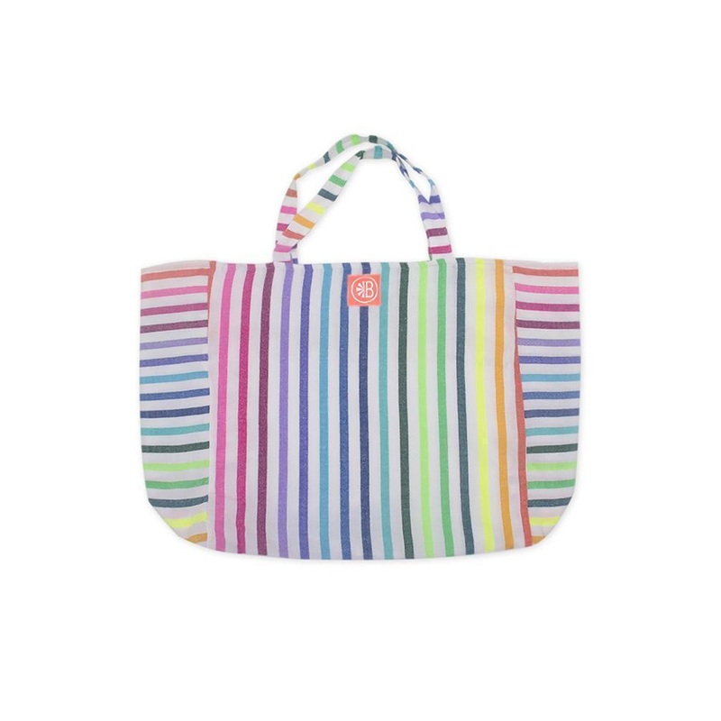 DESCRIPTION:The classic, playful, all time favourite, rainbow colored El Pablo beach tote! You can fit all your beach essentials in it and it is super easy to pack along for holidays. FEATURES:Size: 2,2' x 1,5' x 0,8 ft.Fabrics: 40% recycled cotton, 30% po