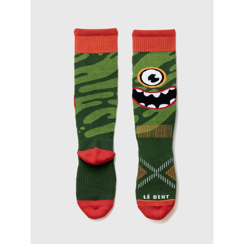 DESCRIPTION:Kids will love these fun, monster-themed socks. Crafted from a soft blend of Merino wool and bamboo rayon, they feature Le Bent's iconic Definitive Fit System for all-day comfort. FEATURES:Stay Up CuffGhost SeamElastic Instep SupportAnkle Band