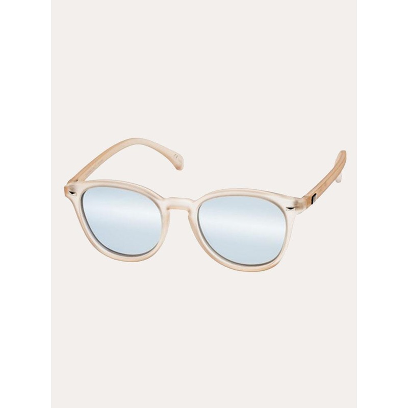 DESCRIPTION:The Le Specs Unisex Bandwagon Sunglasses looks great on both men and women with it's classic frame shape. FEATURES:Lens: Ice blue revo mirrorRaw sugar frameRivet detailingUV ProtectionUnisexProtective pouch included