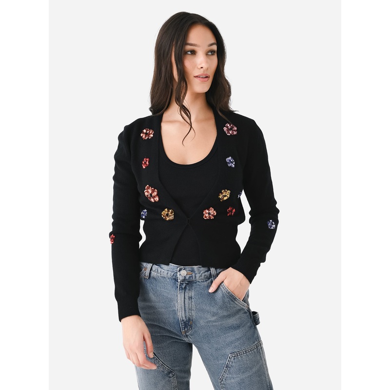 Luxurious cashmere cardigan featuring beautiful floral sequin embellishments.