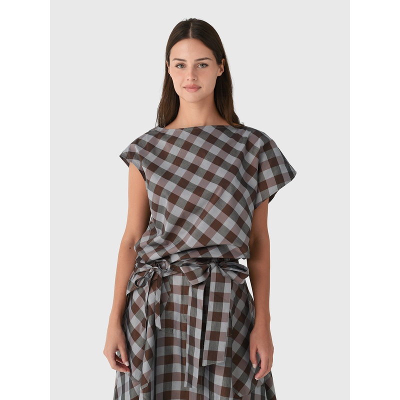 This stylish top has a round neckline with a dropped shoulder and asymmetrical sleeves. An elasticated side with a drawcord provides a perfect fit.