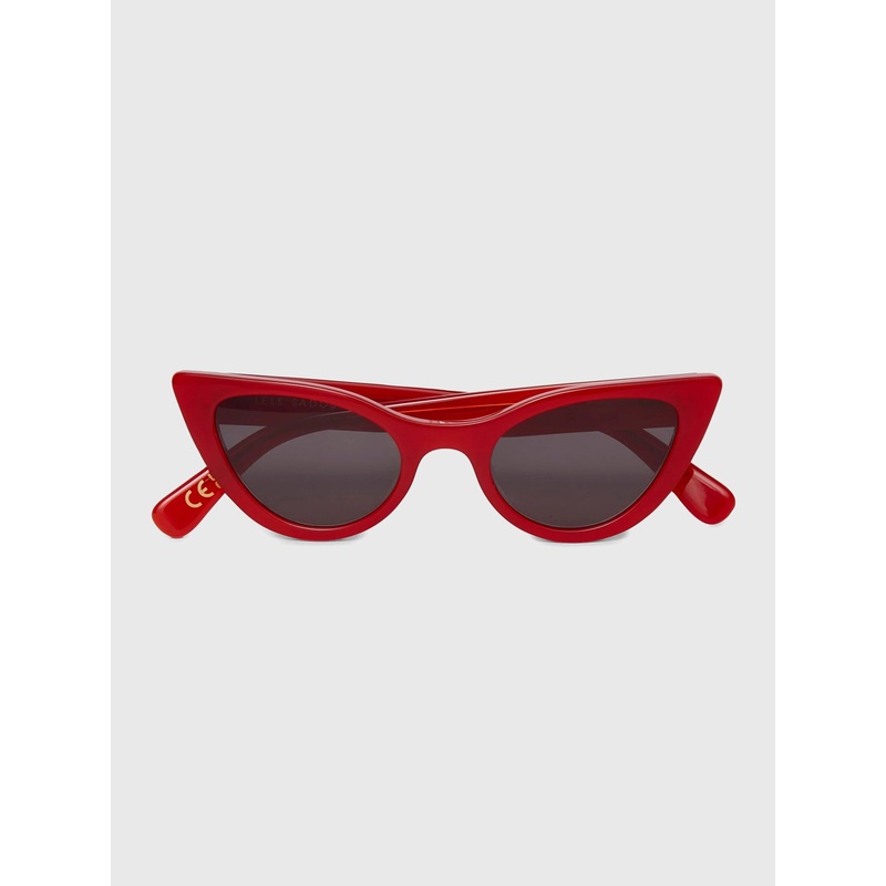 DESCRIPTION:A pair of cat-eye sunglasses made from hand-poured red acetate.