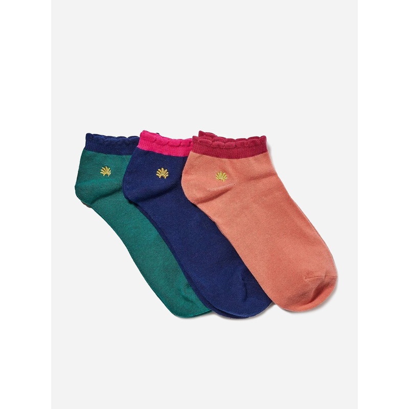 DESCRIPTION:Moisture-wicking ankle socks with a contrast cuff.FEATURES:3-Pack of SocksAnkle LengthContrast CuffEmbroidered LogoMoisture-WickingOne Size Fits Women's Shoe Size 7-10