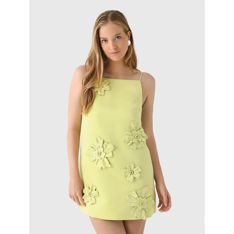 DESCRIPTION:A flattering A-line mini dress featuring a high square neckline and 3D floral appliqus.FEATURES:Square NecklineThin, Fixed StrapsBack Zip Closure3D Floral AppliqusMini LengthA-Line Silhouette100% PolyesterClassic FitModel is wearing size US2/AU