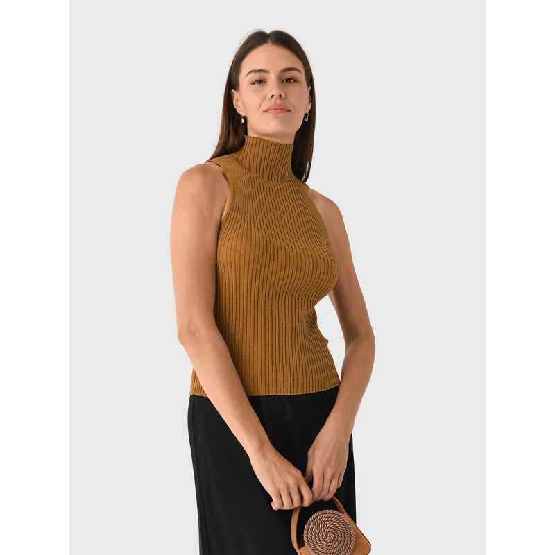 DESCRIPTION:The Blake Sleeveless Turtleneck adds a touch of luxurious shimmer to any outfit. It features lurex details, a high neck, subtle ribbing, and a fitted shape.FEATURES:TurtleneckSleevelessRibbed Knit Fabrication79% Nylon, 21% PolyesterSlim FitMode