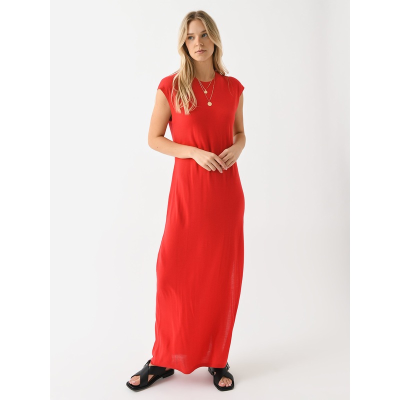 DESCRIPTION:An ankle-length maxi dress made from extra-fine merino wool.FEATURES:Round NecklineSleevelessSplit HemMaxi SilhouetteLength: 55.25 in.100% Merino WoolClassic FitModel is wearing size Small dress.Model's Measurements: Height: 5'8.5" | Bust: 32C