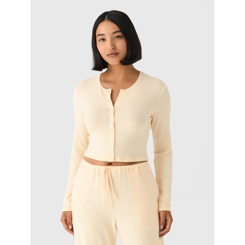 A slightly cropped button cardigan made from super-soft brushed knit fabric.