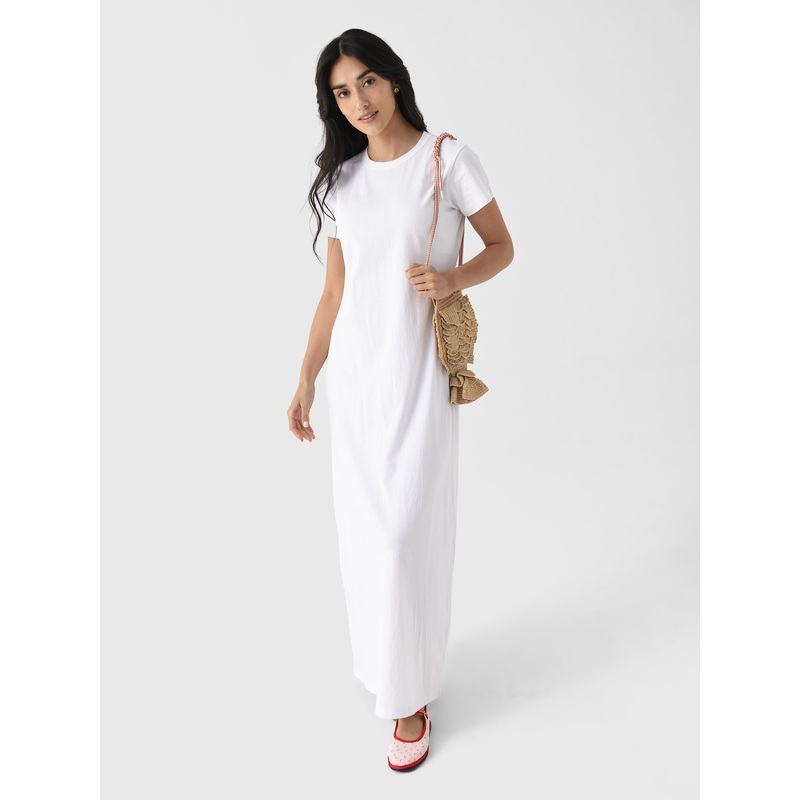 DESCRIPTION:A t-shirt-style maxi dress made from lightweight cotton with a boxy yet tailored fit.FEATURES:Crew NecklineShort SleevesMaxi SilhouetteLength: 55.3 in.100% CottonClassic FitModel is wearing size Small dress.Model's Measurements: Height: 5'8" |