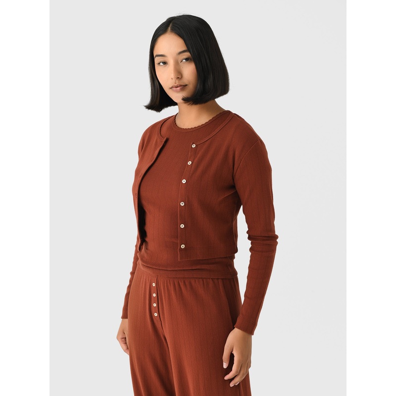 This cropped cardigan is cut from soft pointelle fabric. It features signature pinhole stripes, dainty eyelets, and scalloped edging for charming style.