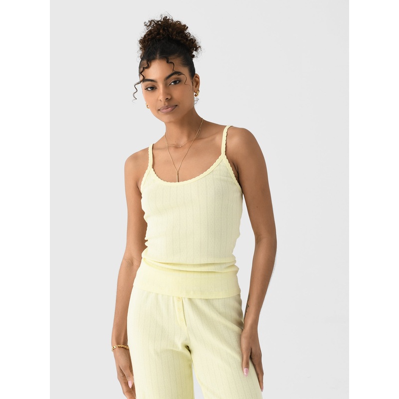 A lightweight tank top made from soft cotton pointelle knit fabric.