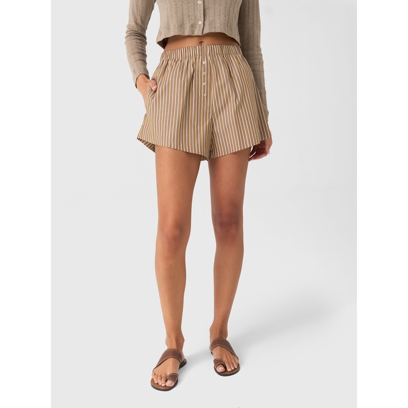 DESCRIPTION:A menswear-inspired boxer short made from striped cotton twill fabric.FEATURES:Elastic WaistbandFaux ButtonsSide PocketsInseam: 2.75 in.All-Over Stripe Print100% CottonClassic FitModel is wearing size Small short.Model's Measurements: Height: 5