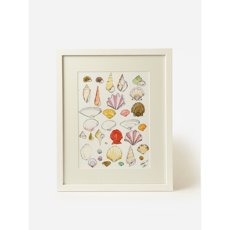 A colorful shell Gicle print on high-quality archival paper with a tonal wood frame.