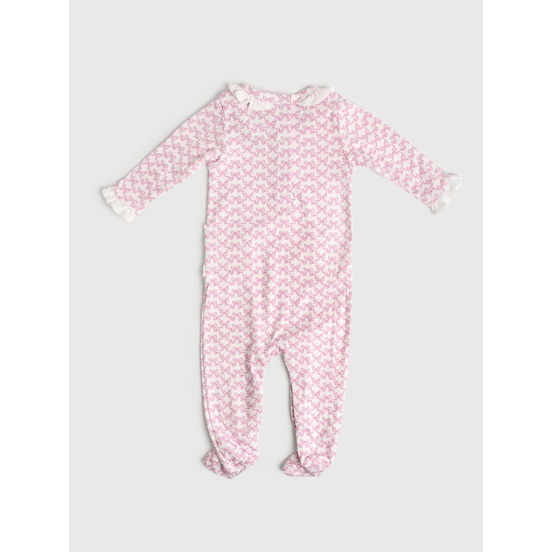 DESCRIPTION:This cozy, footed onesie is made from soft Pima cotton. It features a snap closure in the stride and at the back of the neck for easy changing, while delicate ruffles at the neck and along the side plackets add a sweet touch.FEATURES:Round Neck