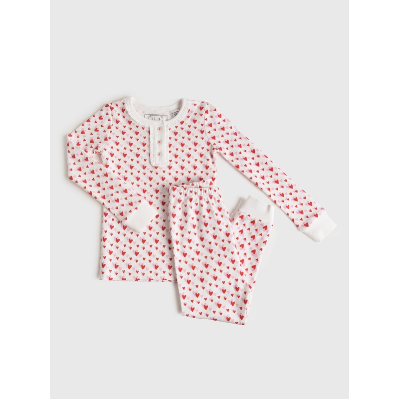 A long-sleeve top and pant pajama set with a custom novelty print made from soft Pima cotton.