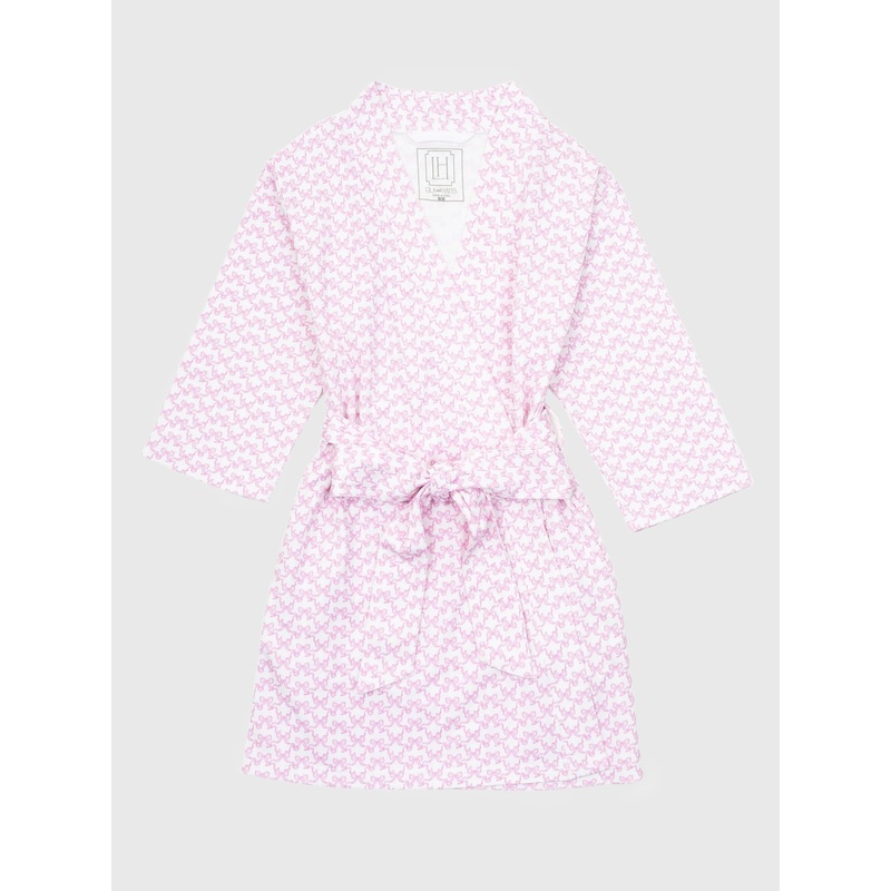 This soft spa wrap bathrobe for girls is made from Pima cotton, offering a luxurious feel. The length hits just below the knee, and the sleeves are designed to fall slightly above the wrist.