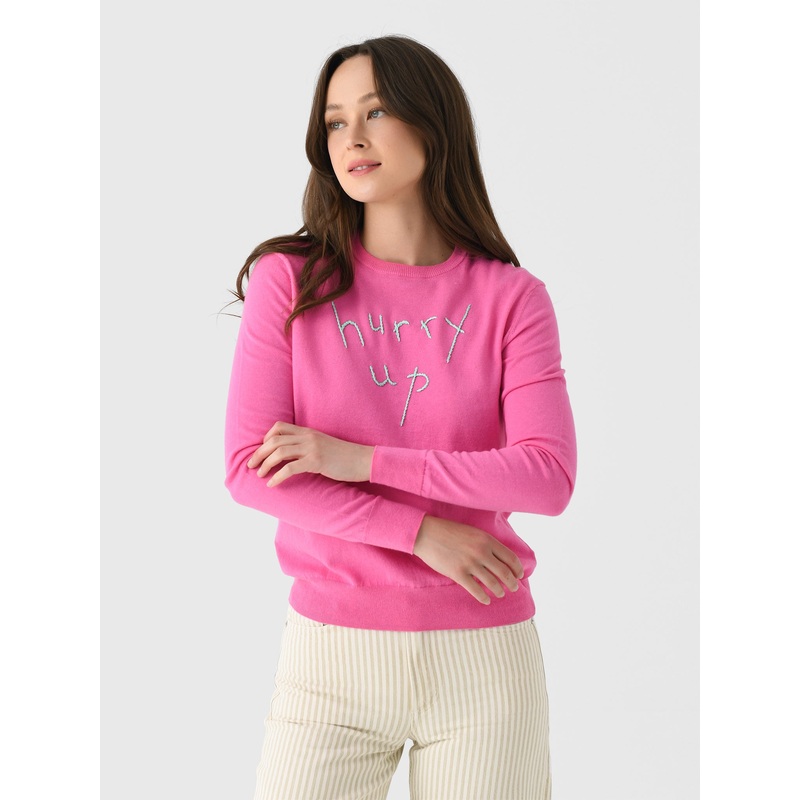 A casual crewneck sweater made from a soft cotton blend with a hand-embroidered design on the front and back.