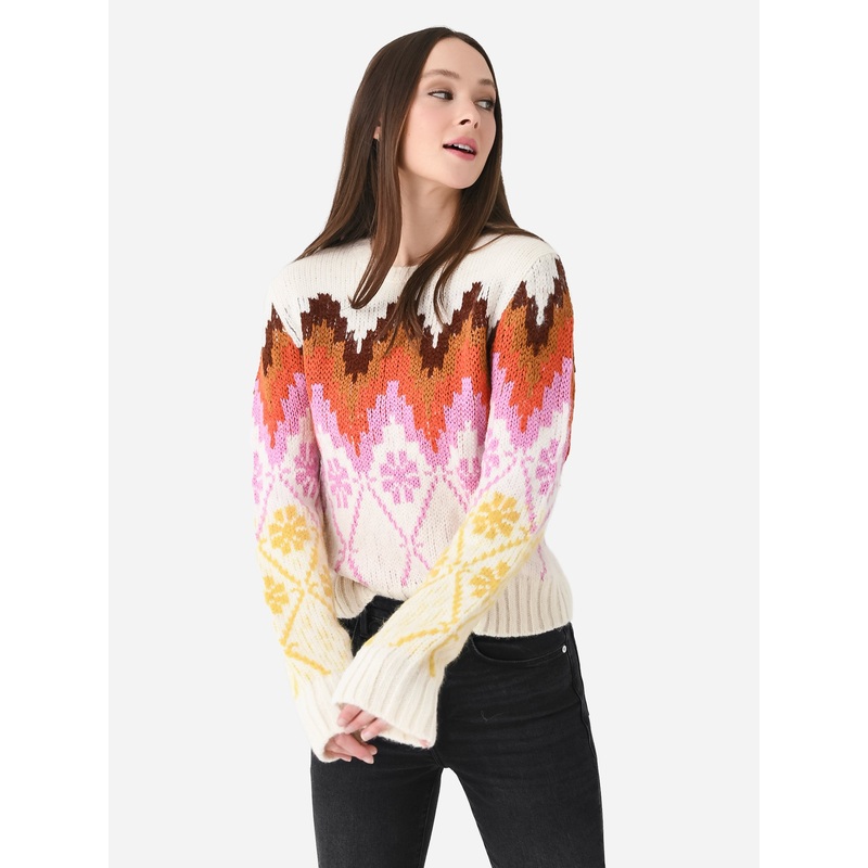 DESCRIPTION:This jacquard pullover is made from a soft alpaca wool blend and features a colorful zig-zag design.FEATURES:Crew NecklineRibbed Neckline, Cuffs and HemAll-Over Novelty PrintJacquard Knit FabricationAlpaca/PolyamideClassic FitModel is wearing s