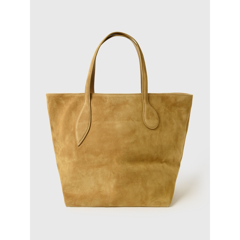 A mid-sized tote bag made from velvety suede with a slouchy and chic design.