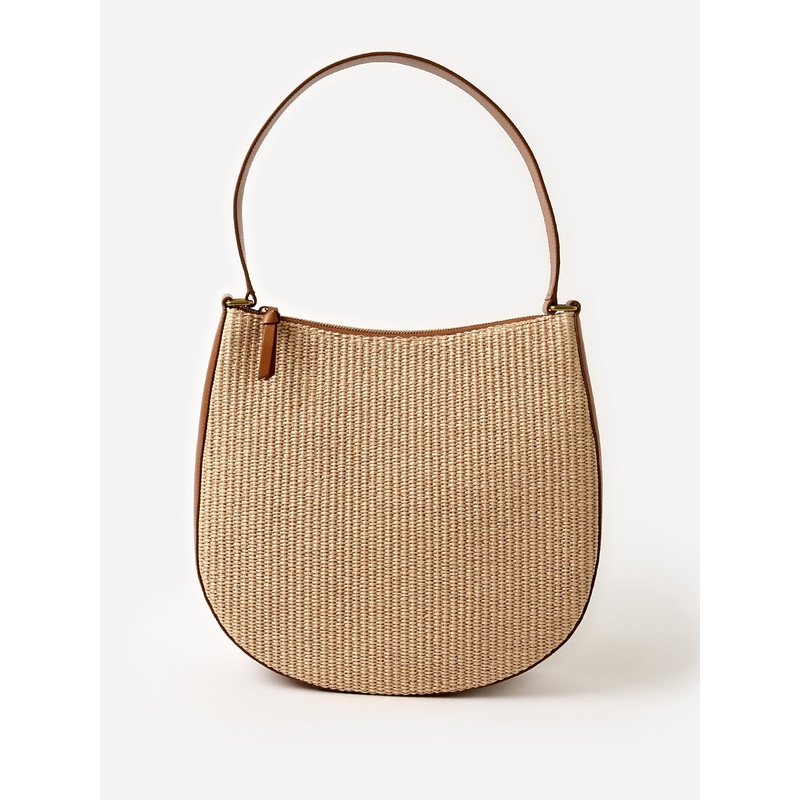 DESCRIPTION:A hobo-style bag made from natural straw with vachetta leather trims.FEATURES:Zip ClosureLeather TrimsInterior Zip Pocket, Slip PocketCotton LiningOuter: 52% Cotton, 48% PolyamideDimensions: 13 in. W x 3.5 in. D x 12 in. H | Handle: 10.5 in.