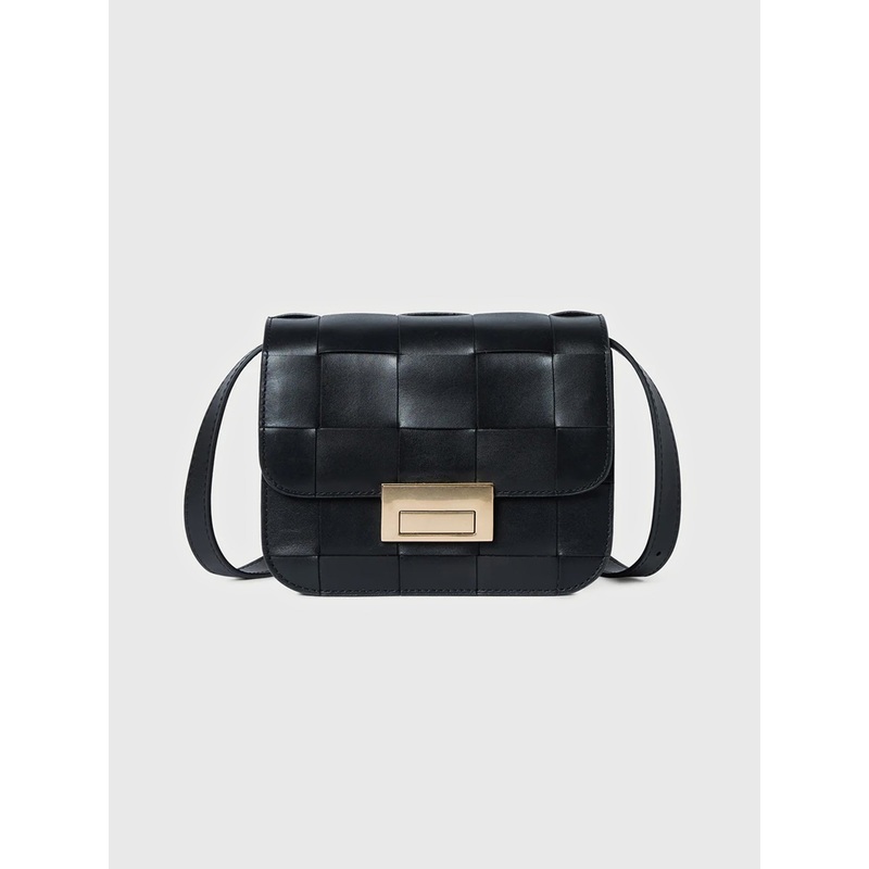 DESCRIPTION:This crossbody bag is crafted from black wide-woven vachetta leather, featuring a tonal strap, flap design, and push-lock closure.FEATURES:Flap DesignPush Lock ClosureInterior Zip PocketWoven Construction100% LeatherDimensions: 7.5 in. W x 6 in