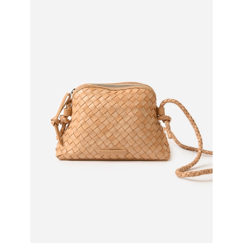 A mini crossbody bag made from high-quality woven buffalo leather.