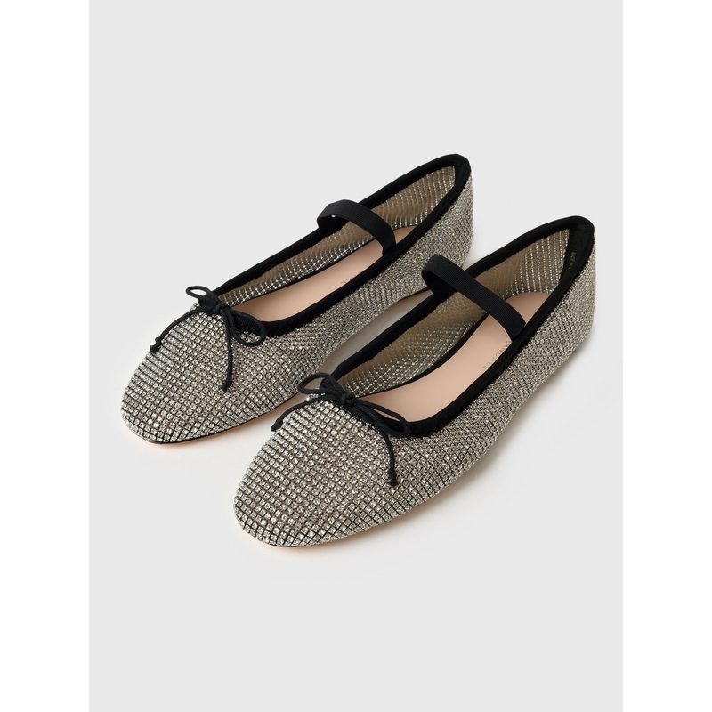 DESCRIPTION:A lightweight ballet flat made from crystal-embellished mesh with a padded footbed and leather sole.