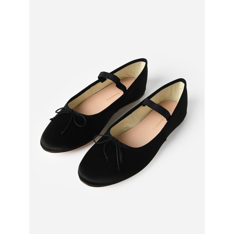 DESCRIPTION:Black satin ballet flat with a soft padded footbed.FEATURES:Almond ToeBow DetailElastic StrapPadded FootbedUpper: 72% Viscose, 28% SilkOutsole: 100% Leather