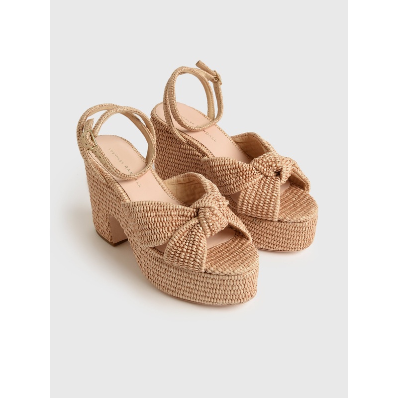 This raffia platform wedge features a signature mignon knot detail and an adjustable ankle strap.
