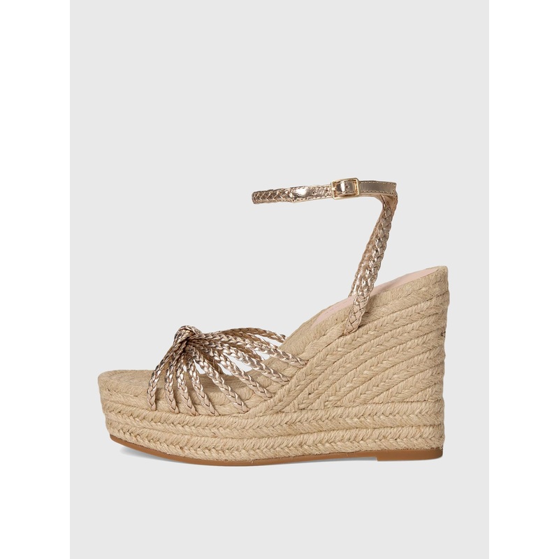 DESCRIPTION:This warm-weather wedge features metallic braided straps that elegantly cross the toe and wrap around the ankle. An adjustable buckle closure ensures a secure fit.FEATURES:Round ToeKnot DetailAdjustable Ankle StrapUpper: 100% LeatherBraided Jut