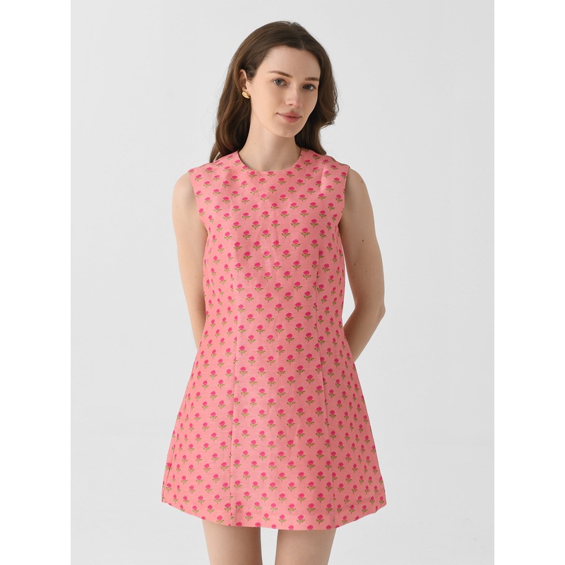 DESCRIPTION:This perfect shift dress features a charming tiny rose print and a flattering shape with princess seams made from soft silk fabric.FEATURES:Round NecklineBack Keyhole Button ClosureBack Zip ClosureSleevelessPrincess SeamsMini SilhouetteAll-Over