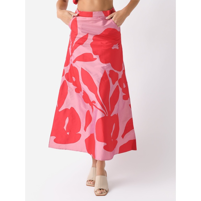 DESCRIPTION:A flattering A-line maxi skirt with an abstract floral design.FEATURES:Banded WaistSide Zip ClosureSide PocketsMaxi LengthA-Line SilhouetteAll-Over Novelty PrintLightweight FabricationClassic FitModel is wearing size Small skirt.Model's Measure