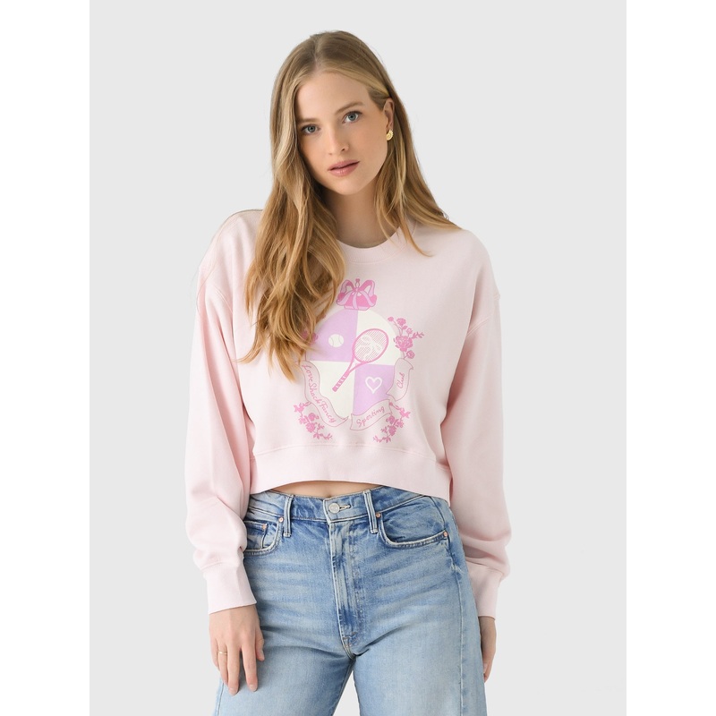 This ultra-soft pullover features a tennis club graphic. The cropped silhouette and long sleeves offer cozy comfort.