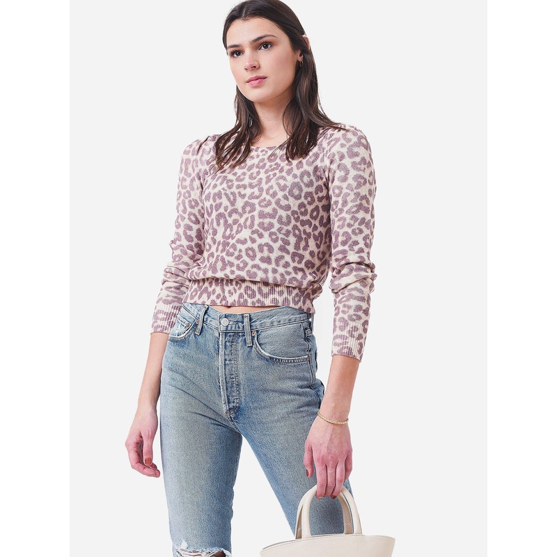 Soft knit sweater featuring all-over animal print in a cropped silhouette.