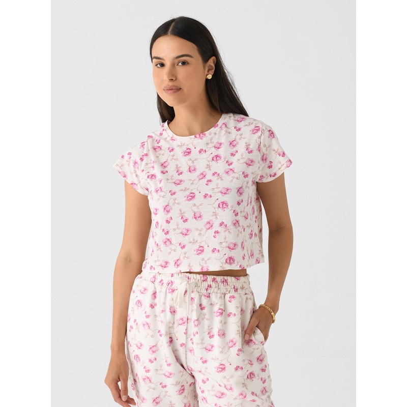 DESCRIPTION:A slightly cropped floral-printed tee made from soft cotton.FEATURES:Crew NecklineShort SleevesCropped SilhouetteAll-Over Novelty Print100% CottonSlim FitModel is wearing size Small tee.Model's Measurements: Height: 5'10.5" | Bust: 32B | Waist: