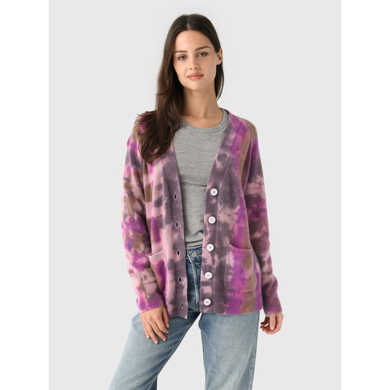 This stylish cardigan is crafted from luxuriously soft cashmere, offering a cozy feel with a modern look. It features a unique tie-dye pattern, making it a true statement piece. With a classic button-front, patch pockets, and a relaxed fit, this cardigan is a perfect blend of comfort and bold style.