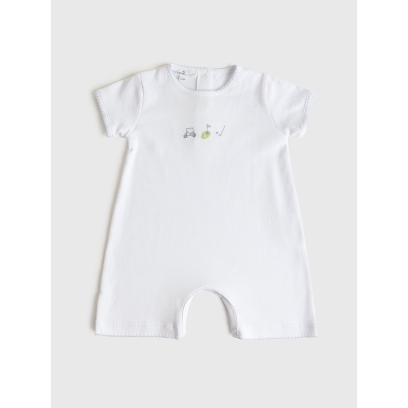 DESCRIPTION:This lightweight playsuit is made from soft Pima cotton and features an embroidered golf design.FEATURES:Round NecklineBack Button ClosureEmbroidered DesignSnap Closure100% Pima CottonClassic Fit