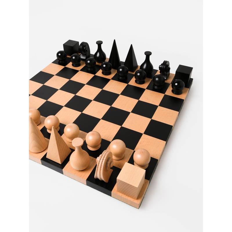 DESCRIPTION:A 1920s-inspired chess set made from solid beech wood with geometric pieces.FEATURES:Includes: Board + 32 Playing PiecesTwo-Tone DesignMaterial: Beech WoodDimensions: 17 in. x 17 in. x 0.75 in.Designed by Dada-Surrealist Artist Man Ray