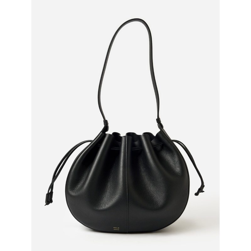 A spacious shoulder bag crafted from supper Italian leather with a drawstring closure.