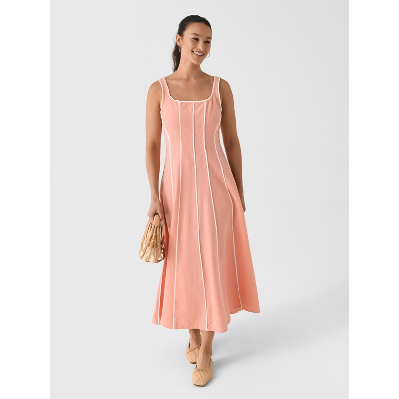 DESCRIPTION:This flattering dress is crafted from breathable cotton, perfect for warm weather. It features a square neckline and wide shoulder straps, accented with contrast piping that highlights the flowing silhouette.FEATURES:Scoop NecklineFixed StrapsB