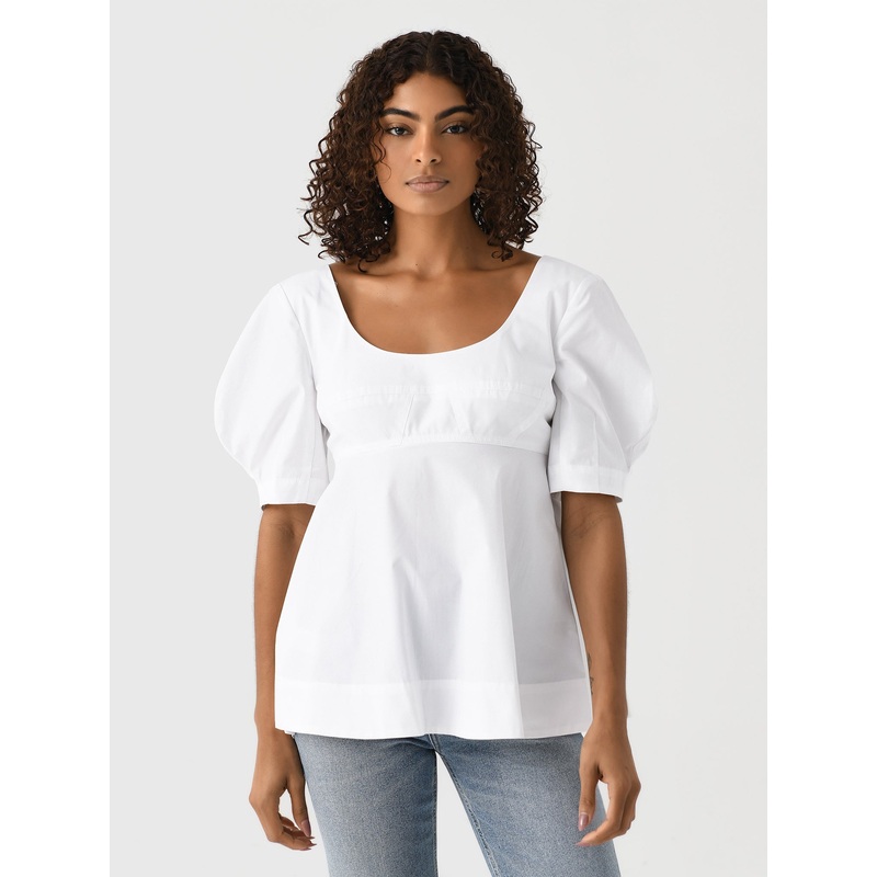 DESCRIPTION:A midweight cotton blouse featuring a structured bustier design with puff sleeves.FEATURES:Scoop NecklineBack Zip ClosurePuff Sleeves100% CottonClassic FitModel is wearing size 2 top.Model's Measurements: Height: 5'8" | Bust: 32B | Waist: 25.5"