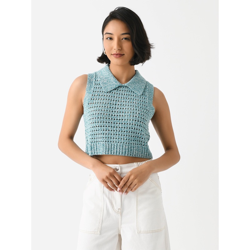 DESCRIPTION:A lightweight collared tank top with an open-knit construction.FEATURES:Spread CollarRibbed TrimsKnit Fabrication35% Viscose, 35% Recycled Nylon, 30% Merino WoolClassic FitModel is wearing size 2 tank top.Model's Measurements: Height: 5'8" | Bu
