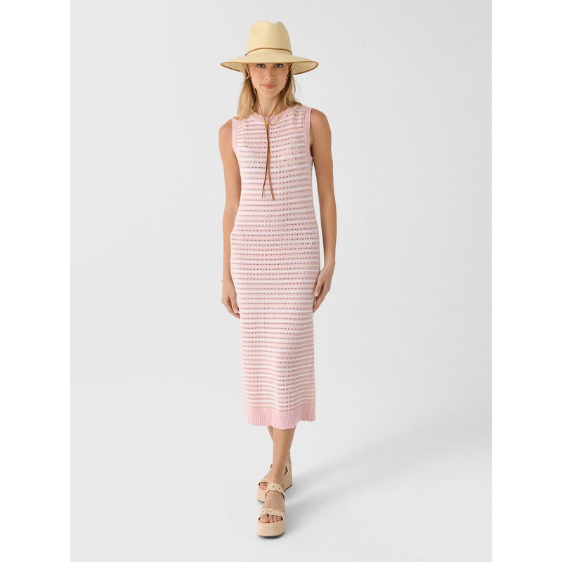 DESCRIPTION:This column-style midi dress is made from a soft cotton blend and features an open-knit design with a stripe print.FEATURES:Round NecklineSleevelessRibbed TrimsMidi SilhouetteAll-Over Stripe PrintKnit Fabrication62% Cotton, 28% Nylon, 10% SilkC