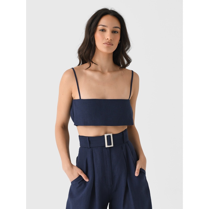 A bandeau-style crop top made from lightweight woven linen.