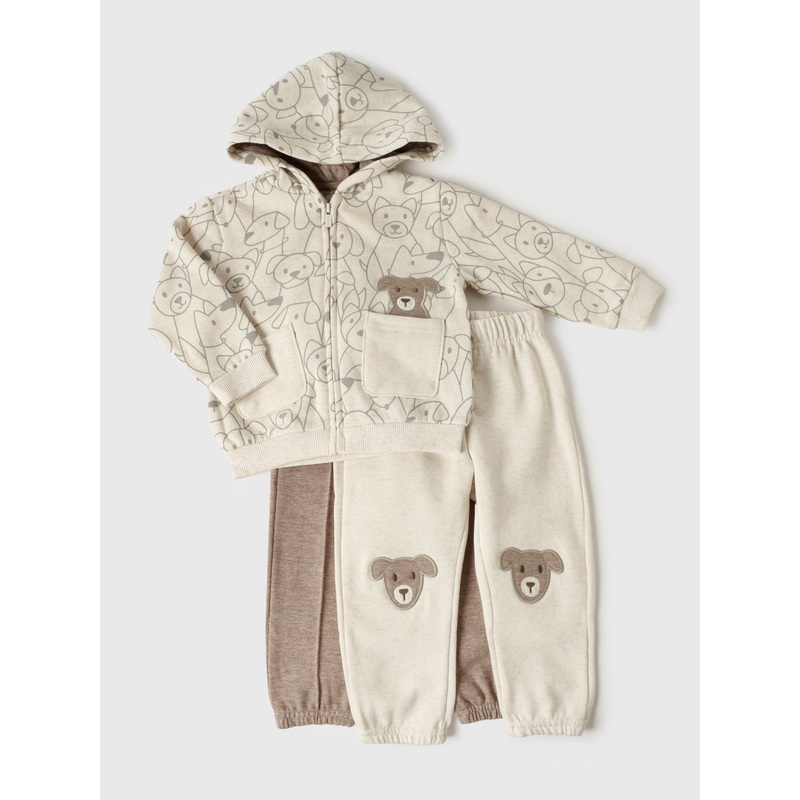 DESCRIPTION:A dog-printed fleece set featuring a zip hoodie and two matching pants.FEATURES:Attached HoodPatch PocketsFull Zip ClosureBanded Cuffs and HemNovelty Print2 Matching PantsAdjustable WaistElastic Ankle CuffsCotton PolyesterClassic Fit