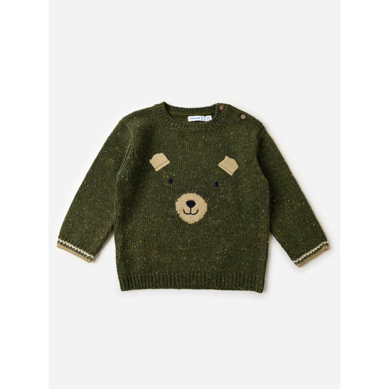 DESCRIPTION:A soft knit sweater with easy access shoulder buttons and a cute bear graphic.FEATURES:Round NecklineShoulder ButtonsFront GraphicRibbed Neckline, Cuffs and HemKnit Fabrication56% Polyester, 25% Acrylic, 13% Wool, 6% PolyamideClassic Fit