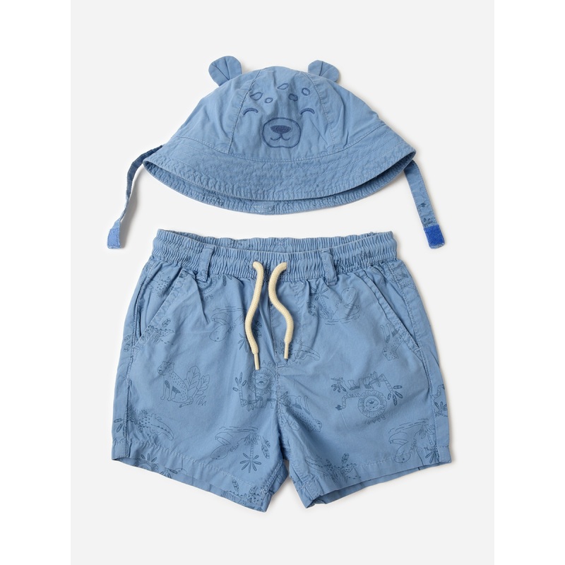 DESCRIPTION:A matching bermuda short and hat set made from lightweight cotton.